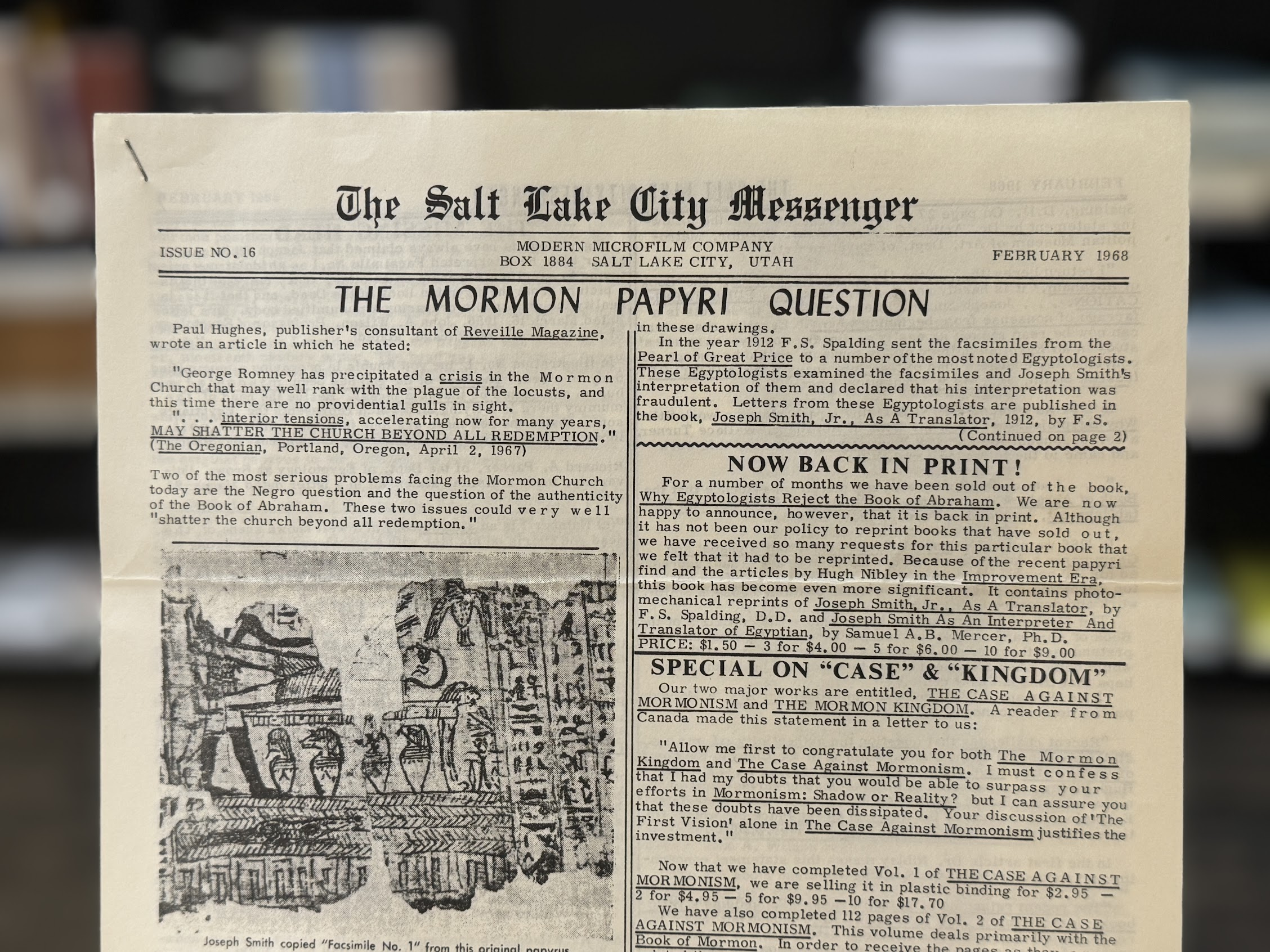 Two of the most serious problems facing the Mormon Church today are the Negro question and the question of the authenticity of the Book of Abraham. These two issues could very well “shatter the church beyond all redemption.”